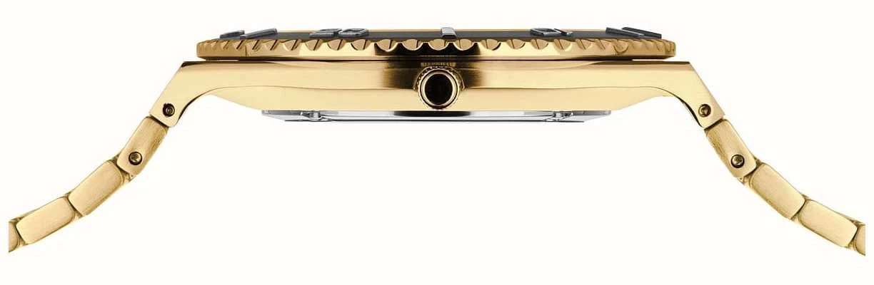 - This watch is finished with a gold-tone stainless steel bracelet that fastens with a folding clasp.