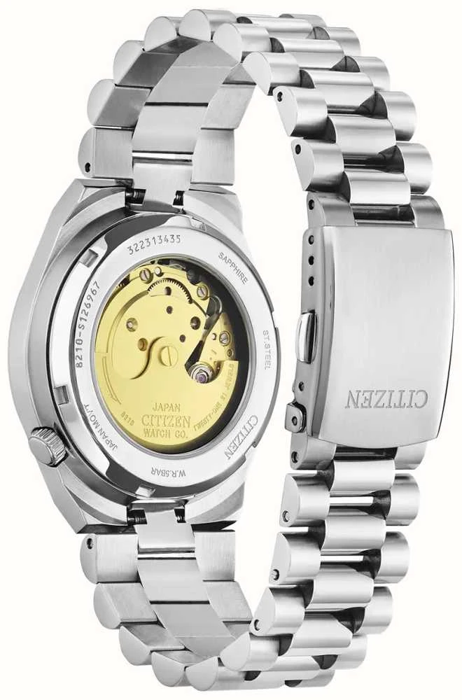 - A stainless steel case frames the dial. The case measures 40mm in diameter.Â