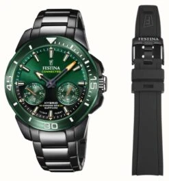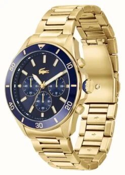 - The watch is finished with a gold-plated stainless steel bracelet that fastens with a deployment clasp.