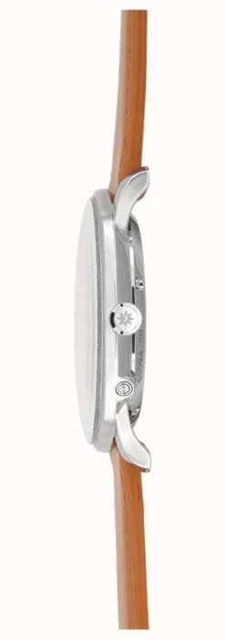 - This model features a matt silver-plated dial with Arabic hour indices.