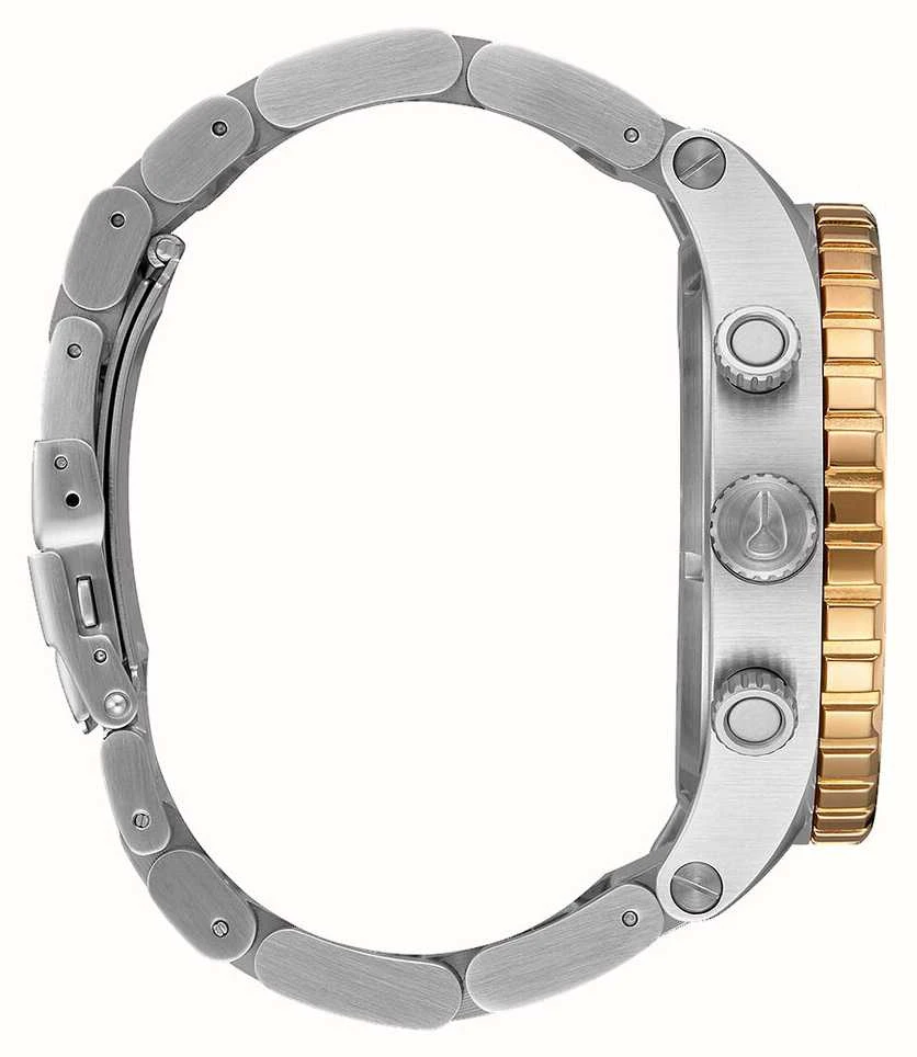 - Securing the watch is a stainless steel bracelet with gold IP plated elements.