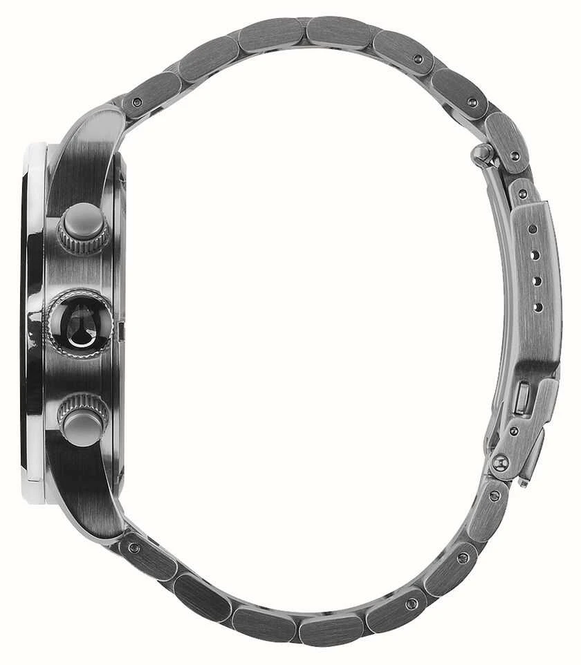- Securing the watch is a versatile gunmetal IP plated stainless steel bracelet.Â