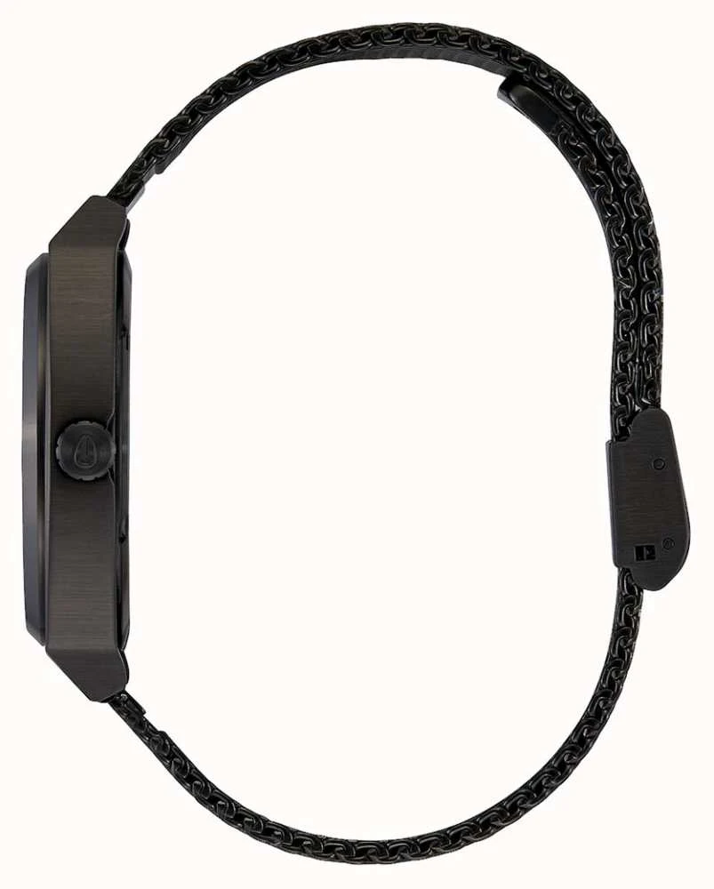 - Securing the watch is a black IP plated Milanese mesh bracelet with a custom jewellery style bracelet with sliding buckle