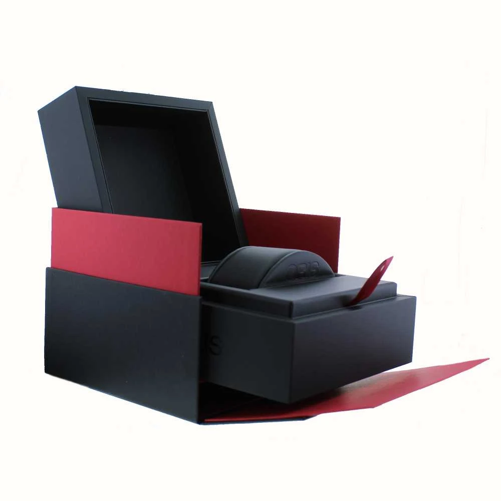 - The model features an exhibition case back to showcase the mechanical movement.Â