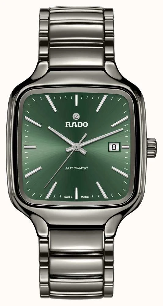 - The square monoblock case retains the easily recognizable Rado silhouette. The case and bracelet are made of plasma high-tech ceramic.