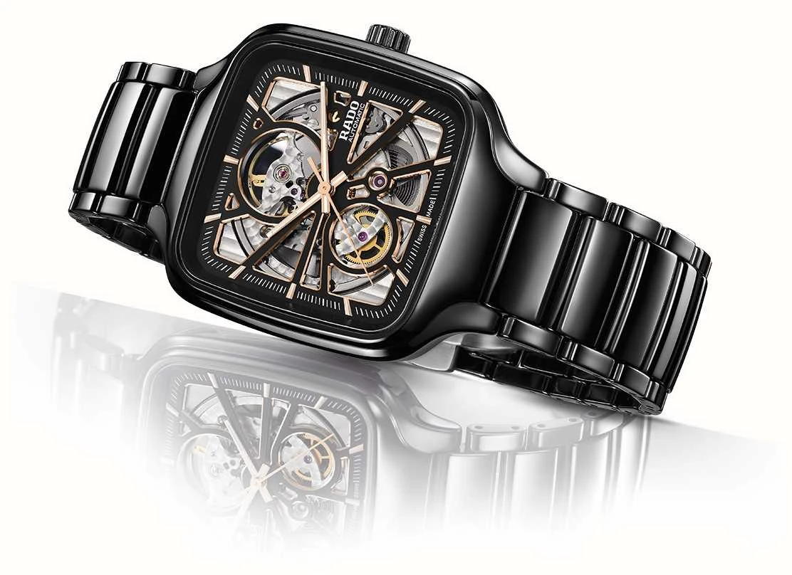 - The bracelet and square distinctive monobloc case are made from high-tech ceramic.