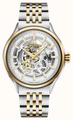 - Each watch features an open dial in skeleton design that exposes the movement within.