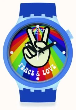 - This watch features a rainbow dial with a hand in the shape of a peace sign at the centre. The dial also features the phrase “peace & love”.