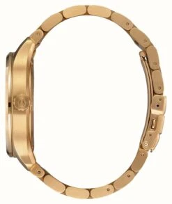 - The watch is finished with a gold plated stainless steel bracelet.Â