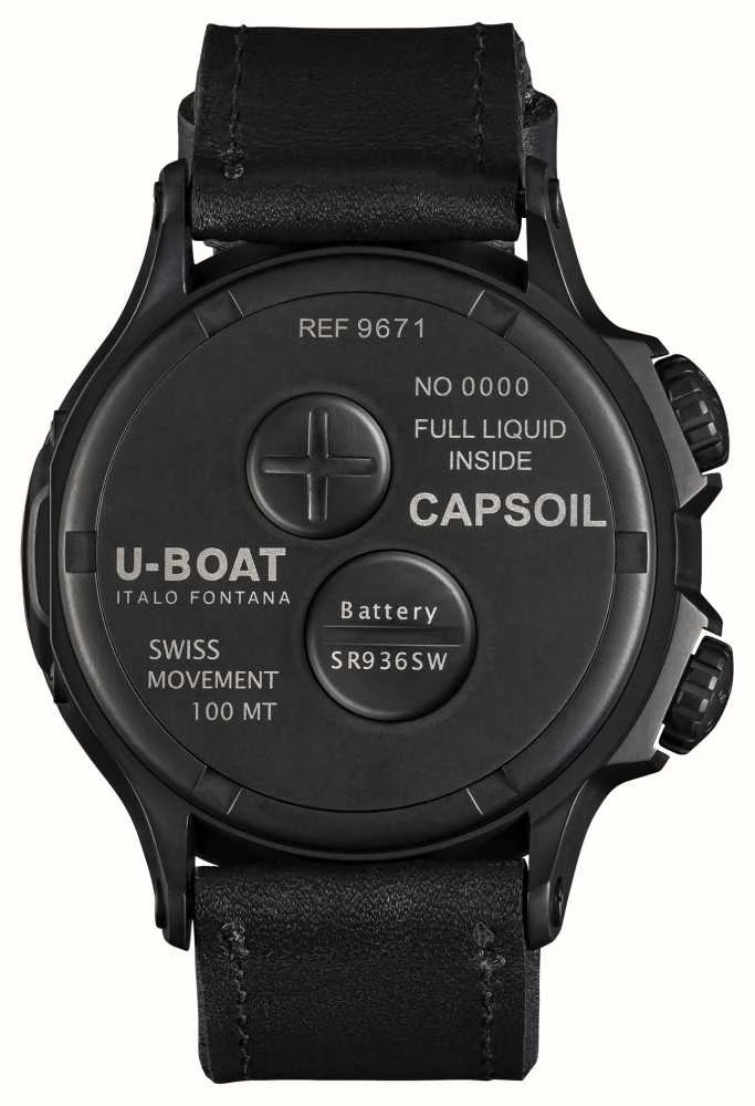 - The crown is placed on the left-hand side and is fitted with U-Boat’s patented crown protection system.