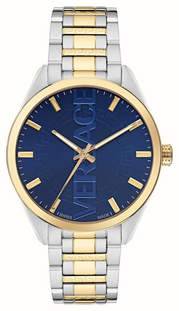 - The blue dial features a vertical Versace logo down its centre.