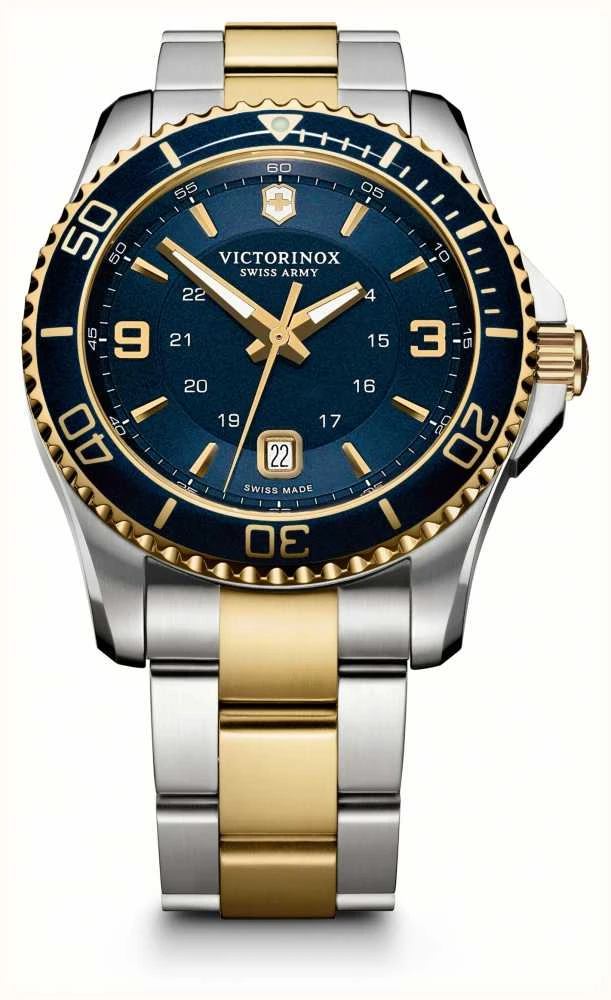 Victorinox have designed their Maverick Collection for adventurers. The watches in the collection are all water-resistant up to 100 metres (10 bar), making them the perfect diver’s watches for swimming and snorkelling. Victorinox recognise that divers need pinpoint timing to keep track of their dive times, so have ensured to include a unidirectional bezel on every Maverick model. All of the Maverick watches are effortlessly elegant, making them suitable for wear to work or for weekend adventures. Victorinox have made every effort to ensure that each watch in the collection will be robust and reliable for diving and outdoor wear.Â